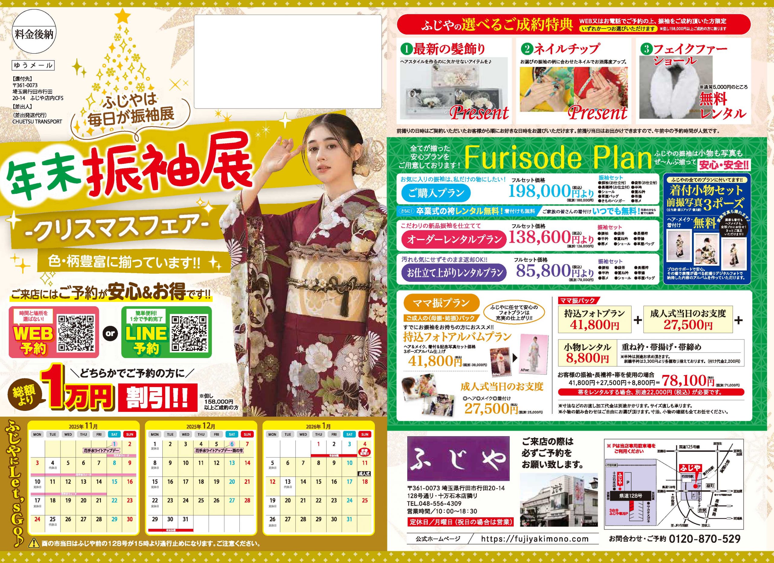 一生に一度の晴れの日を、誰よりも美しく、自分らしく迎えてほしい。そんな願いを込めて、この度、[ふじや] では年末振袖コレクションを開催いたします。